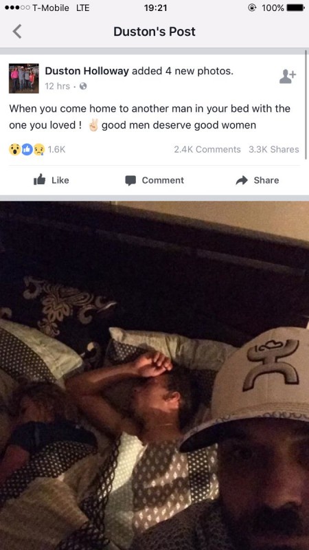 "Когда приходишь домой и видишь рядом с женщиной, которую любил, другого мужчину! Хорошие мужчины заслуживают хороших женщин", - подписал он фотографии.
