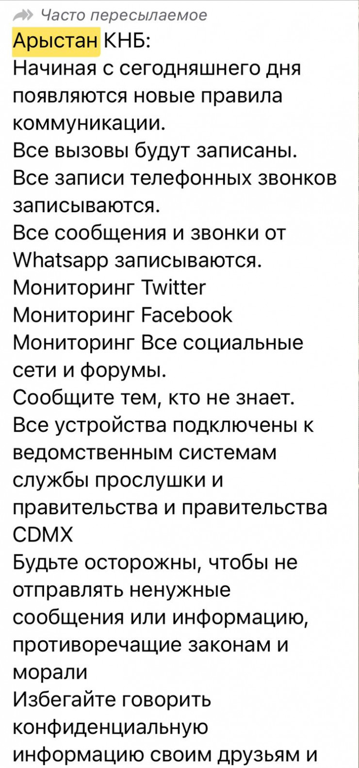 Factchek оны 2019 жылы тексеріп қойған. Хабарламаның жаңа нұсқасы ҰҚК «Арыстан» қызметінен деп тараған.