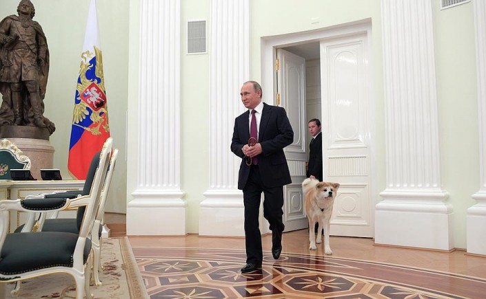 Собака Путина Юмэ испугала японских журналистов Фото с сайта kremlin.ru