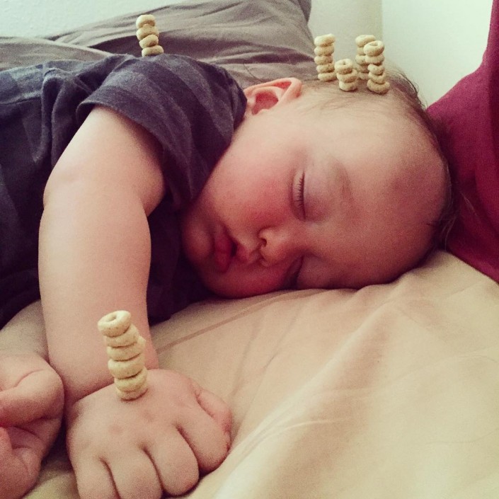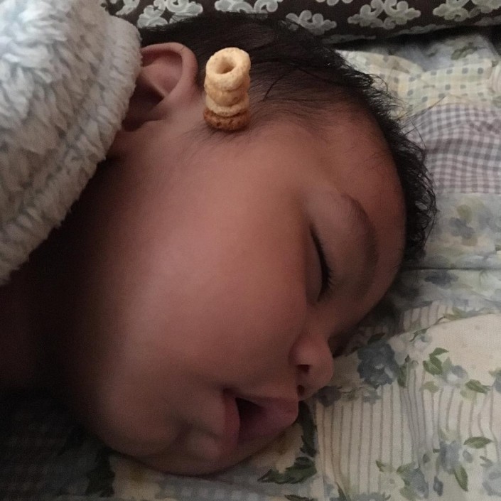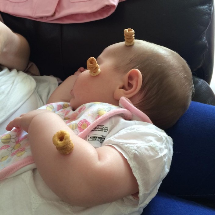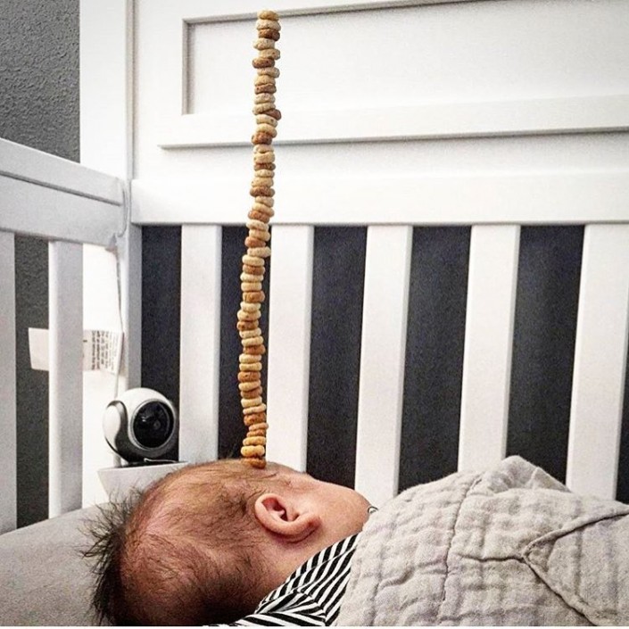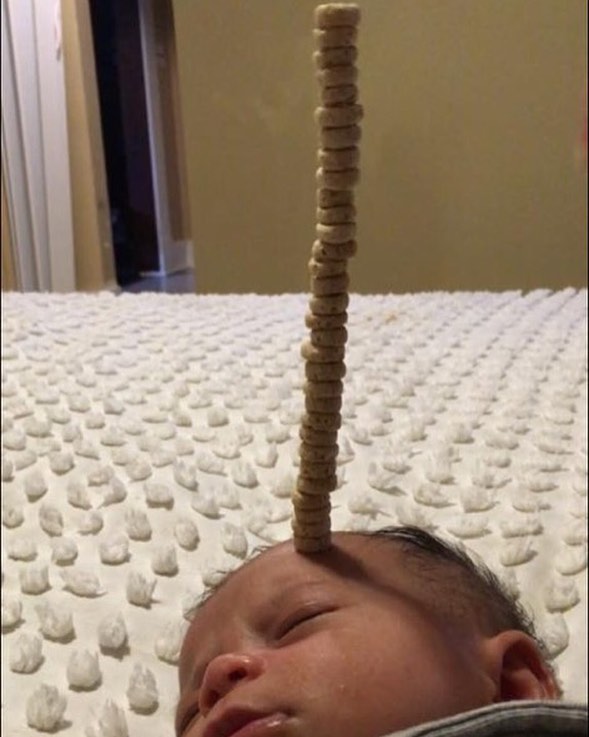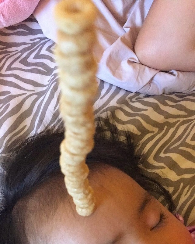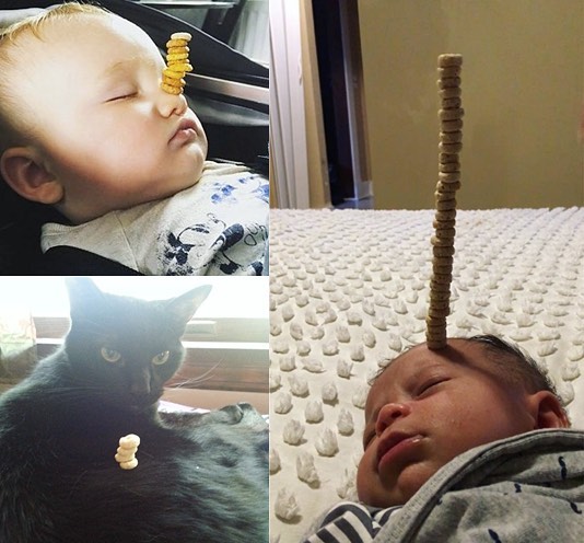 Соцсети взорвала новая мода: Построй башенку из кукурузных колец на лице младенца