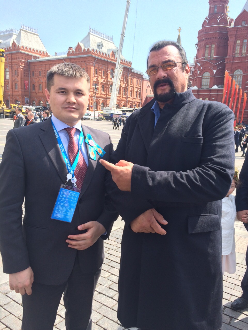 Стивен Сигал находился на трибуне с казахстанскими ветеранами на параде в Москве Стивен Сигал посетил парад Победы в Москве. Фото may9.ru
