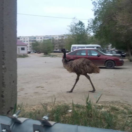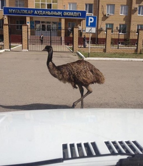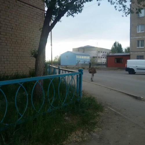 Фотографии с расхаживающим по улицам города страусом появились в пабликах и социальных сетях. Жители районного центра Мугалжарского района Актюбинской области были удивлены, увидев гуляющую по здешним дворам птицу. Страус даже успел покрасоваться перед местным акиматом.