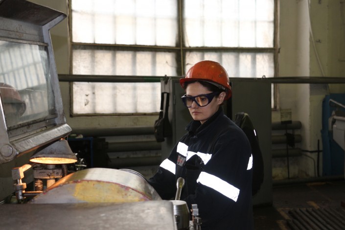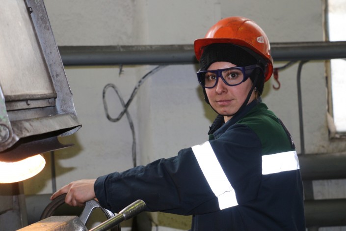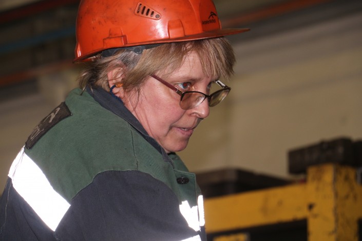 Елена Ганжа 17 лет трудится  на заводе, после политехнического университета работала стропальщиком, потом крановщицей, мастером ОТК, потом доросла до начальника цеха. Кроме хорошей зарплаты, женщин на этой нелегкой работе держит слаженный коллектив. "Мы жалеем своих рабочих, они у нас молодцы. А они нас уважают за то, что у нас, как ни крути, мужской характер. Я технарь, и на другой работе себя не мыслю. Да, мы всегда на работу приходим с макияжем, мы же с мужчинами работаем и должны выглядеть хорошо. У нас есть женщины, что по 30 лет в цеху работают и всегда приходят на работу с макияжем, с украшениями. Ведь мужчины на нас не только как на начальников смотрят. И нам очень приятны их поздравления с 8 Марта", - говорит обладательница неженской профессии.