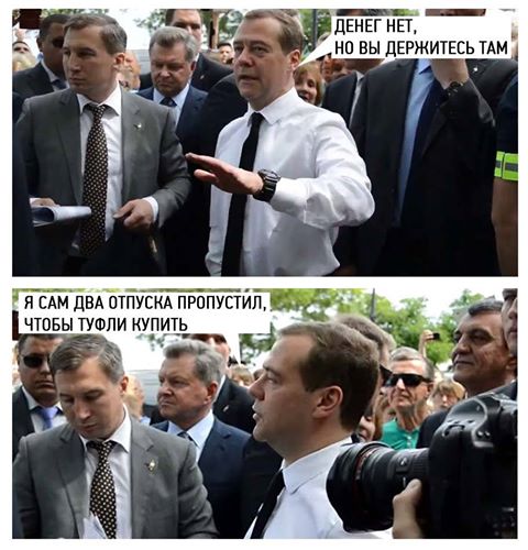 Об этом борцы с коррупцией тут же сообщили в своем Twitter, не забыв припомнить Медведеву его знаменитую фразу: "Денег нет, но вы держитесь". "Медведев в туфлях Jimmy Choo за 50 000 рублей передает привет пенсионерам с их неиндексированными пенсиями. Держитесь!" - написали сотрудники фонда.