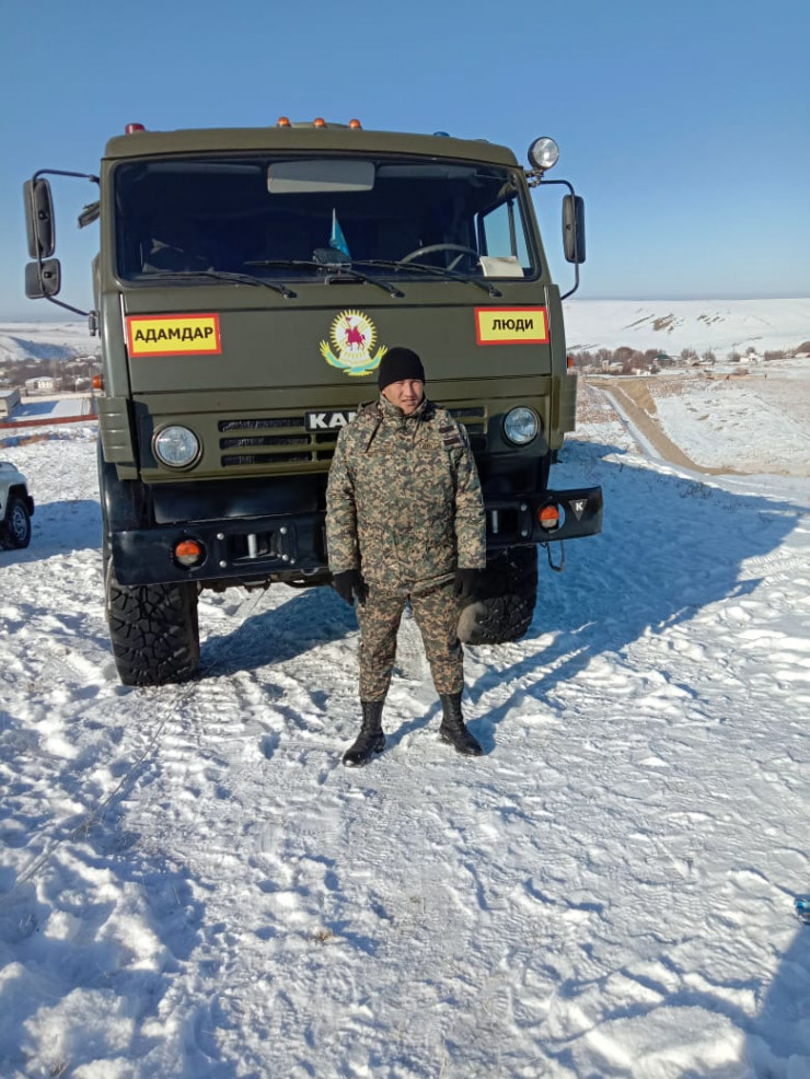 "Жып-жылы сурет. Қоғам жақсы қабылдады. Бейбіт жауынгердің бейнесі. Суреттегі ер адам Ұлттық ұланның жауынгері екені анықталды. Қазақстан Республикасы Ұлттық ұланы "Оңтүстік" өңірлік қолбасшылығына қарасты 6698 әскери бөлімінде қызмет ететін ефрейтор Шахрух Хасанов. Ол қаңтардың 4-і дабыл белгісімен қызметке келгенін айтты. Олар Шымкент қалалық әкімдіктің маңына қоғамдық тәртіп пен қауіпсіздікті қамтамасыз ету қызметіне шыққан", - дейді ведомство өкілі.