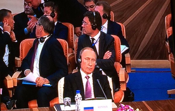 Кроме того, иранцы не обеспечили перевод выступления Путина с русского языка. Президенту России пришлось остановить выступление и подождать, пока найдут переводчика.