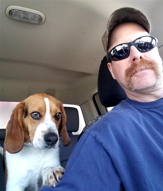 На селфи-снимке видно, как счастливая собака ласково положила голову на плечо своего спасителя, высунув язык. В момент создания фотографии бигль вместе с Джо Кирком ехал в центр помощи из собачьего приюта.