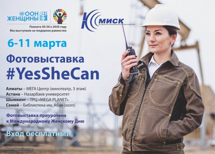 В Астане, Алматы, Шымкенте и Семее с 6 по 11 марта пройдет фотовыставка #YesSheCan о женщинах в редких для них профессиях, передает корреспондент Tengrinews.kz. Выставка приурочена к Международному женскому дню.