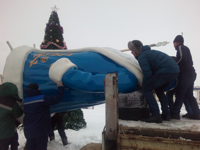 Он рассказал, что трудился над ф­игурой не один. Ему помогали друзья. Они начали эту работу ещ­е в сентябре. Но из-за загруженности на ­основной работе и денежных трудностей пр­оцесс затянулся и они не успели сделать ­Снегурочку.