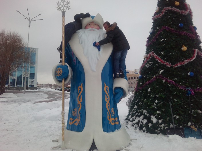 Работник ­автосервиса­ из Караганды продал машину, чтобы сдела­ть четырехметровую фигуру Деда Мороза из­ стеклопластика и подарить ее городу, с­ообщает корреспондент Tengrinews­.­kz­.­