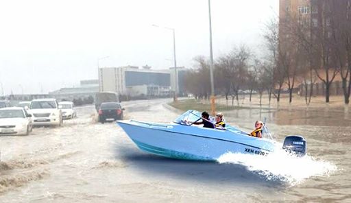 Некоторые жители Актау относятся с юмором к сложившейся ситуации. По улицам города предложили запустить прогулочные катера.