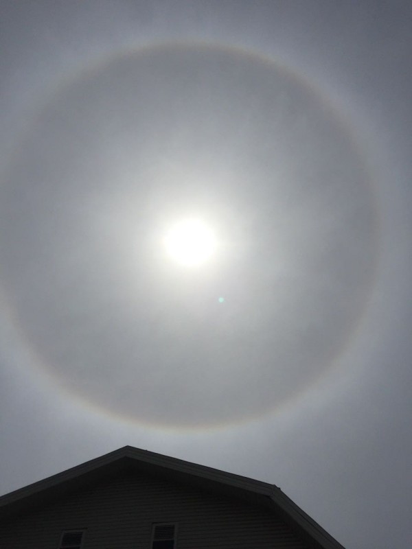 "Голову подняла посмотреть на небо, чтобы узнать погоду, и увидела такой ореол вокруг солнца, как круглая радуга. Я думала, не получится сфотографировать на телефон, но получилось", - рассказала женщина. По ее словам, снимок сделан в центре Караганды. Женщина утверждает, что ореол вокруг солнца наблюдается уже на протяжении нескольких часов. "Раньше похожее что-то было, но не так четко. И зимой бывало такое", - продолжила собеседница.