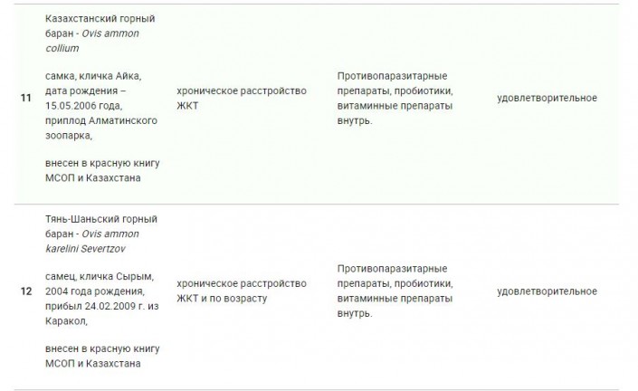 Зоопарк Алматы обновил список животных, которые находятся на грани смерти Фото с официального сайта зоопарка