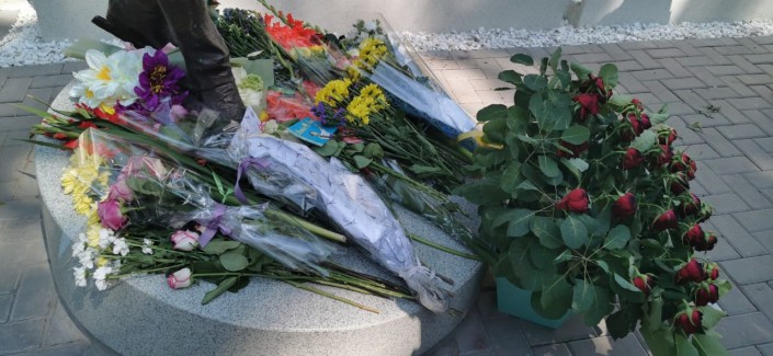 Пришедшие к памятнику Денису Тену делились воспоминаниями о погибшем чемпионе.