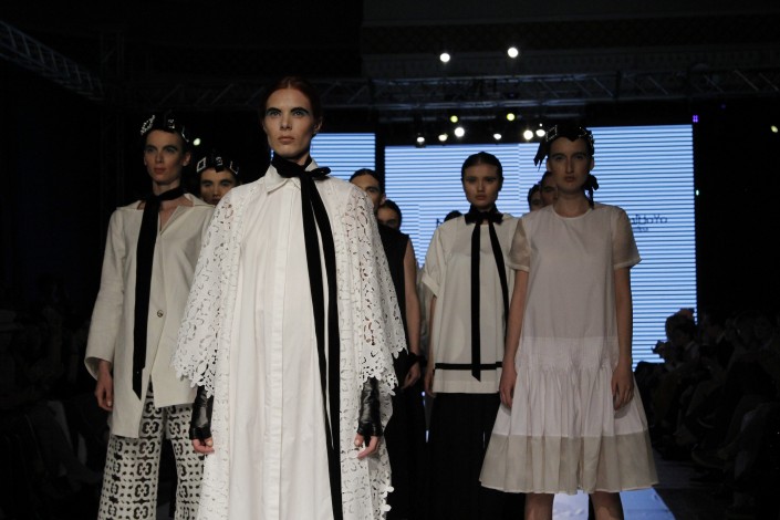 В коллекции постоянного участника KFW - модельера Ларии Джакамбаевой - преобладают свободный стиль и светлые оттенки. "Это стрит-стайл. В основу легла мужская рубашка. Я считаю, что это незаменимая вещь в гардеробе современной девушки, потому что это уже must have. То есть ее можно носить с брюками и с юбками, и отдельно, и миксовать, в спортивном стиле, в классическом - в общем, рубашка сейчас перешла в такую категорию, что ее можно носить везде", - рассказала дизайнер.