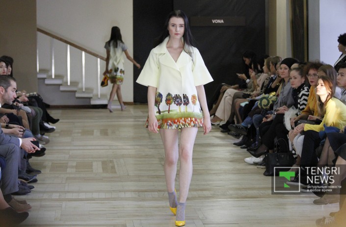 Алена Дрыгула (VONA) из Украины создала линию, вдохновившись детскими рисунками, поэтому в коллекции на смену четким линиям придет некая непосредственность, а насыщенность ярких красок придала образу идейность и неповторимость.