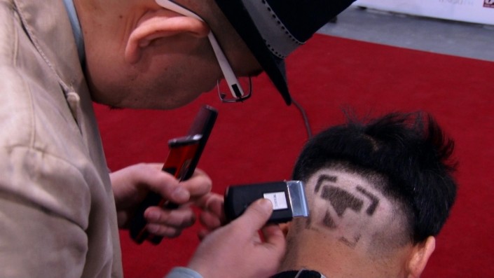 Кроме того, основатель движения hair-тату в РК Дидар Алиев выбрил на голове журналиста Tengrinews.kz Айдоса Косубаева логотип редакции. На его создание у мастера ушло 20 минут.