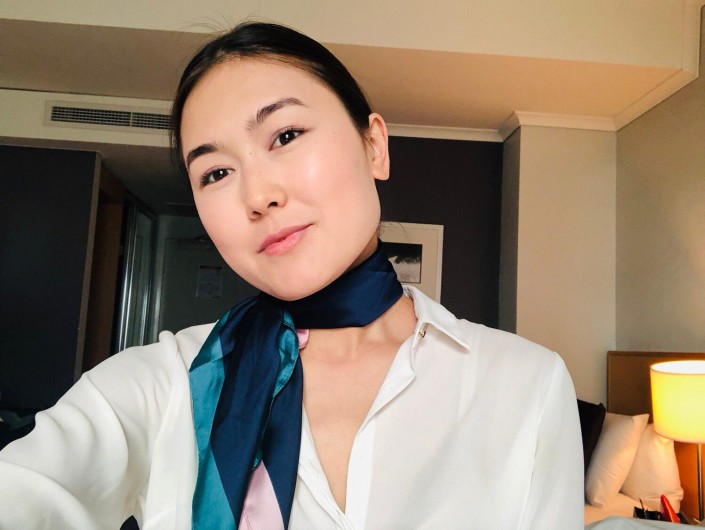 27-летняя Зарина почти год работает в авиакомпании Qatar Airways и проживает в Дохе, Катар. Признается, что всегда мечтала полетать на трехэтажном самолете и увидеть Австралию. Ее мечта сбылась с устройством на эту работу. За год работы девушка побывала в более чем 20 странах. Самые любимые города - Сидней и Копенгаген.