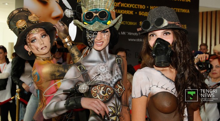 Нейл-стилисты и визажисты боди-арт на протяжении четырех часов создавали образы девушек в стиле Steampunk и "Цирк Шапито".