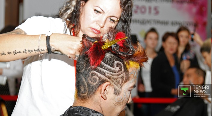 По словам участника чемпионата Ерлана Айнабекова, hair-тату становится все популярнее в Казахстане. Молодые люди просят выстричь на головах имена и портреты любимых людей, а также знаменитые бренды.