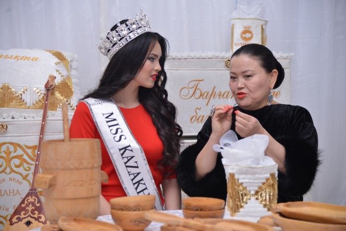"Мисс Казахстан-2015" Алия Мергембаева из Актау получила в подарок кроме денежного приза традиционное казахское приданое от Дома авторского дизайна "Алтын Орда", сообщает корреспондент Tengrinews.kz.