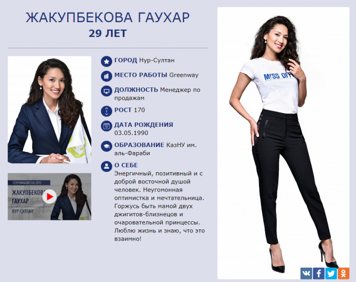 Жительница Нур-Султана Гаухар Жакупбекова вошла в топ-30 финалисток международного конкурса красоты "Мисс офис", проходящего в России, передает Tengrinews.kz.