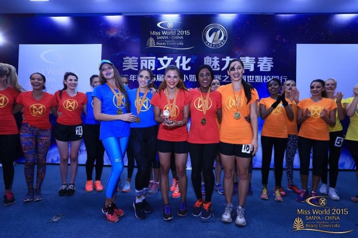 Обладательница звания "Мисс Казахстан-2014" 22-летняя Регина Вандышева, которая представляет страну в Китае на 65-м международном конкурсе красоты "Мисс Мира-2015", приняла участие в спортивном конкурсе, передает корреспондент Tengrinews.kz.