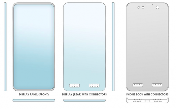 Задумка китайской компании также состоит в том, чтобы выпустить смартфон из двух составляющих: базы и отсоединяемой части. В опубликованной схеме видно, что дисплей можно будет открепить от корпуса и использовать его по беспроводной связи.