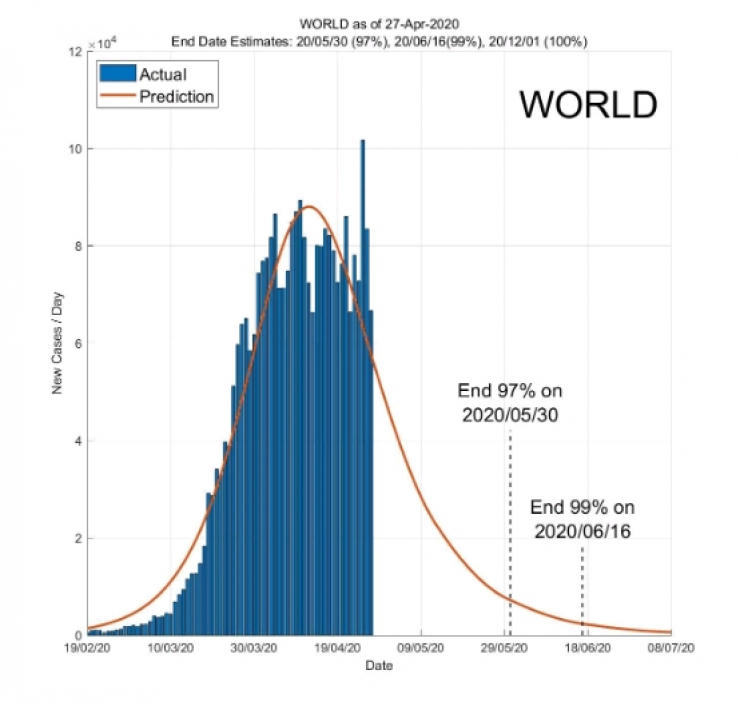 Согласно выводам ученых, в США эпидемия полностью утихнет к 9 сентября, в России - к 7 августа, в Иране - к 28 сентября, в Турции - к 30 июля, в Италии - к 31 августа, в Испании - ко 2 августа, в Канаде - к 20 августа, в Великобритании - к 22 августа, во Франции - к 9 августа. В Китае завершение ситуации с COVID-19 произошло уже 9 апреля.