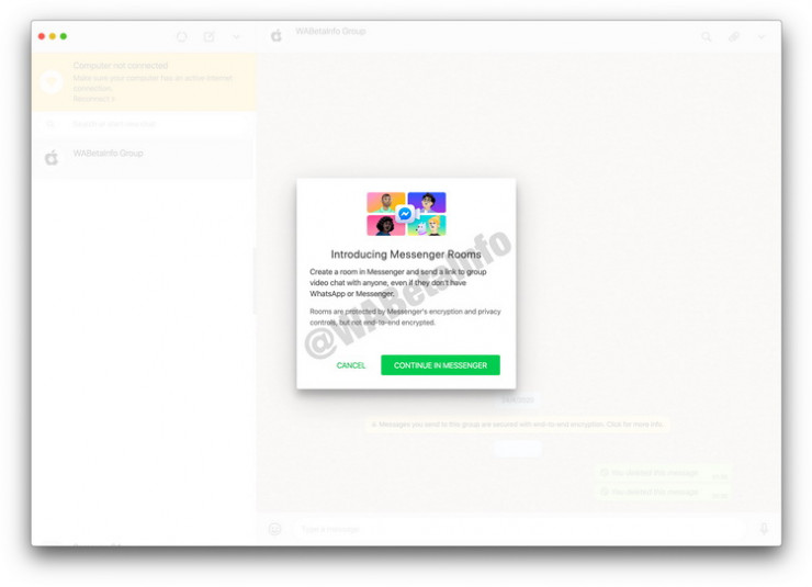Отмечается, что Messenger Rooms является новейшим сервисом для видеоконференций от компании Facebook, владеющей WhatsApp.