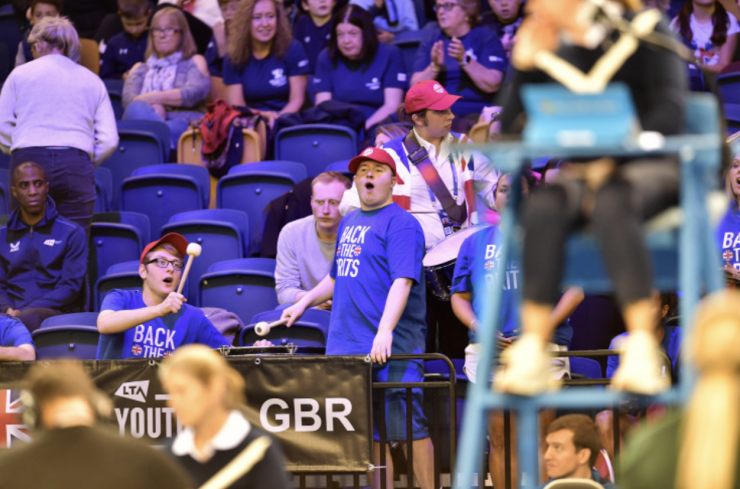 Несмотря на то, что на Emirates Arena, вмещающей 8200 человек во время теннисных соревнований, было достаточно пустых мест, атмосфера была очень даже неплохой. Группа поддержки у британцев была готова - музыкальные инструменты, различные кричалки, они старались не отставать от "наглых" гостей, которые раз за разом перекрикивали местную публику.