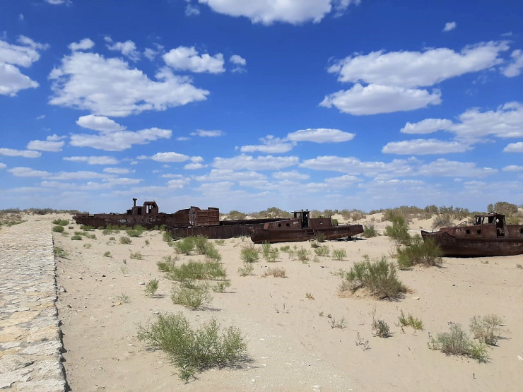 Муйнак, бывший портовый город. Здесь расположено знаменитое кладбище кораблей. Прямо перед набережной ржавеет с десяток бывших судов.