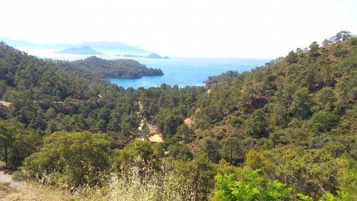 Следующим национальным заповедником на нашем пути была сказочная Голубая лагуна в городе Олюдениз. Летний сезон здесь открыт уже 1 мая. Морская вода переливается оттенками аквамарина и бирюзы, а пляж, по версии туристических журналов, считается одним из лучших в мире. Это мировой центр любителей параглайдинга. Все небо над лагуной разукрашено яркими куполами парящих парапланов.