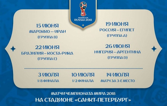 Во время чемпионата мира по футболу в России всего состоятся 64 футбольных матча. Семь из них примет Санкт-Петербург.