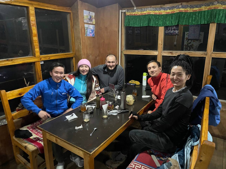 Поселок на 4 000 метров называется Як Кхарка. С этой высоты у некоторых начала проявляться горная болезнь, уже заметно чувствовалась головная боль. В Нур-Султане у меня обычно сатурация 100, а при нахождении там она упала до 93, уже ощущалась нехватка кислорода. На 4 200 метров из-за головных болей у многих упало настроение. Чтобы воспрять духом, мы включили музыку на телефоне и минут 20 активно танцевали. Боль как рукой сняло. Это тоже один из законов восходителей: физически подняться не так тяжело, как морально, поэтому важно мыслить позитивно. Помогало еще то, что, пока работал Интернет, мы получали много сообщений с поддержкой от друзей и знакомых со всего мира.