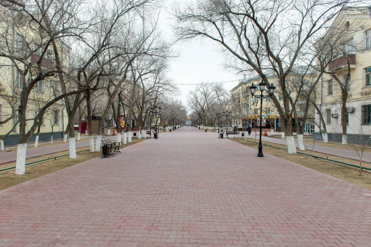 После трех монотонных часов езды по шоссе, проложенному по каменистой пустыне от Кызылорды до горизонта, город воспринимается как рукотворный оазис, который вот-вот взорвется весенними красками. Судя по всему, так и будет, поскольку местные жители с повышенным вниманием относятся к городской рекреационной среде.