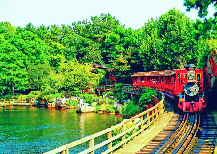 Диснейленд в Лос-Анжелесе. Это самый первый Диснейленд, который был открыт 1955 году, в городе Анахайм, Калифорния. Сначала в нем было всего 18 аттракционов, но со временем парк разросся и претерпел некоторые изменения и перестройки. Сегодня в нем восемь тематических зон и около 55 видов аттракционов. Главная улица парка напоминает городок Среднего Запада начала ХХ века, также есть зоны города Дикого Запада (Приграничная страна), джунгли (Мир приключений) и, конечно, место, где живут диснеевские герои (Страна фантазий). А по территории парка курсирует старый диснеевский поезд, сев на который вы сможете совершить обзорную экскурсию по парку и увидеть все тематические зоны.