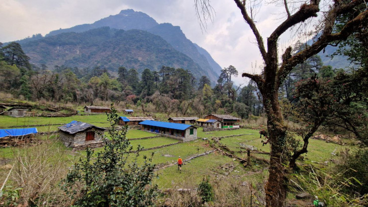 "Обычный резкий подъем в гору и тропа начинают волнообразно тянуть нас наверх. В тот день мы в основном шли по лесу, лес влажный, сочный, диковинный. Заросли бамбука, появились кусты рододендронов, часто встречаются ручьи. Особенностью для нас стали водопады: они проливаются с самого гребня по обе стороны ущелья. В лесу постоянно кто то шуршит, щебечут птицы и трещат цикады. Прошли почти 11 километров за 3 часа 15 минут. Темп держали хороший, сделали одну остановку на чай около хижины, потому что других мест для остановки не было. Встали на ночлег в лоджии Дован (2460 метров), здесь соединяются два ущелья: одно ведет к подножию Дхаулагири 4, а основное - в базовый лагерь Дхаулагири 1", - рассказал Максут Жумаев.