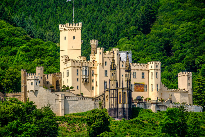 Штольценфельс. Этот замок был построен в XIX веке на руинах когда-то существовавшей здесь крепости XIII века, которая не устояла под давлением времени и бесконечных войн. В 1823 году администрация города Кобленца решила сделать подарок кронпринцу Фридриху Вильгельму и даровала ему землю с руинами старой крепости. Сразу после этого на этом месте началось строительство, и через 25 лет здесь был построен замок Штольценфельс.