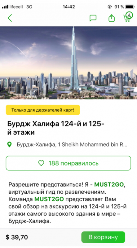 MUST2GO - это виртуальный гид по туристическому отдыху в ОАЭ. Чтобы воспользоваться его услугами, нужно зайти на сайт или загрузить приложение для мобильного телефона. В каталоге MUST2GO собрано более 150 интересных предложений - экскурсии по городам, морские круизы, аттракционы и развлечения.