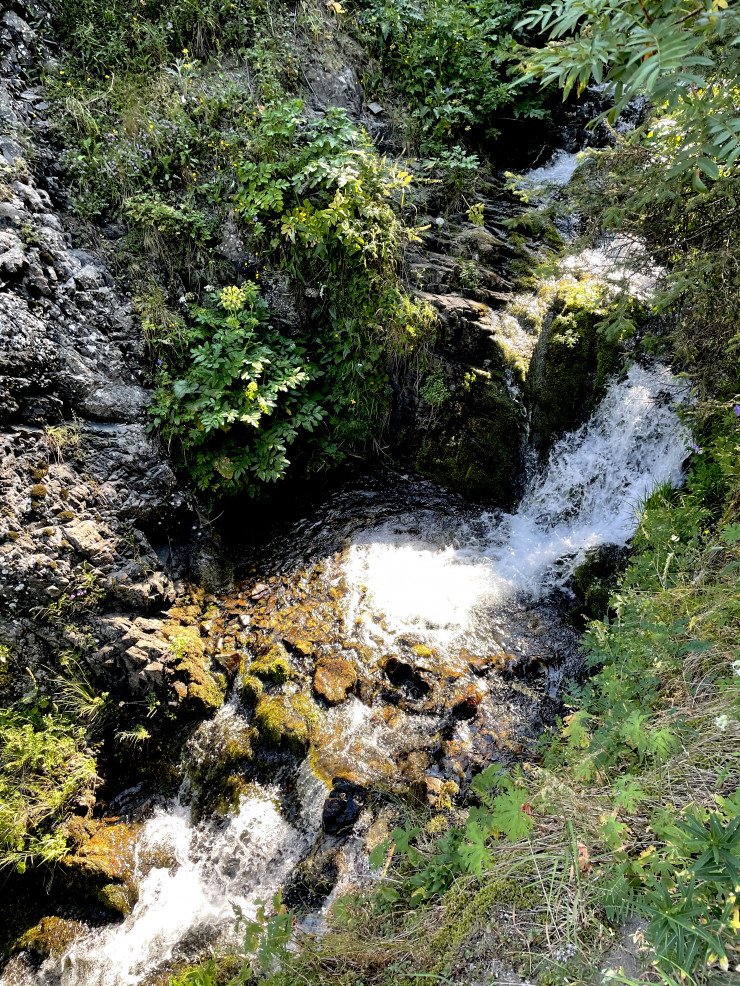 До нижнего водопада путь составляет всего 700 метров. Его высота около 5-6 метров, тем не менее он завораживает своей неповторимостью. Живописный маршрут на протяжении двух часов впечатлит даже заядлых любителей гор обилием растительного мира, елей и полей, усыпанных цветами. По пути можно встретить ели с интересной формой и изгибами.