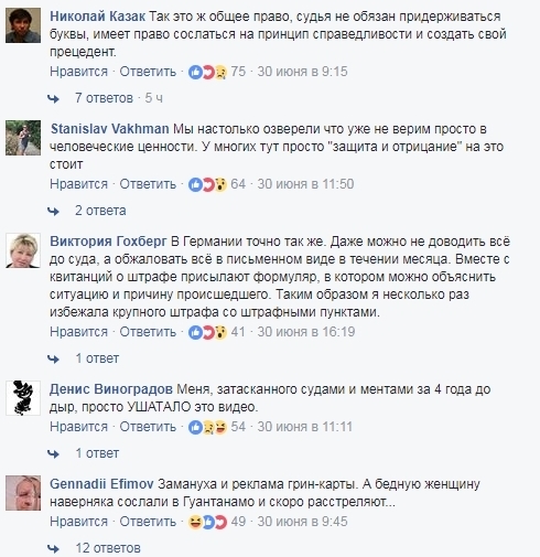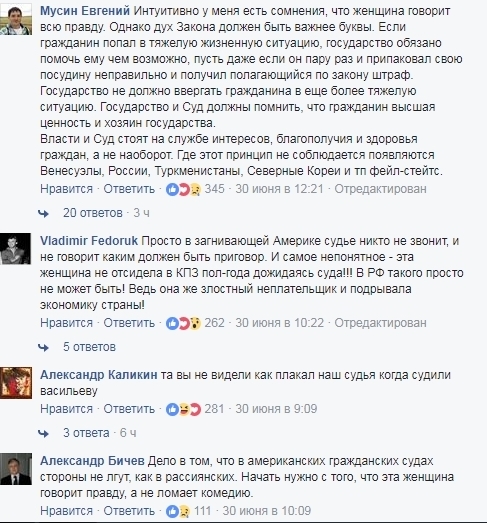 Некоторые комментаторы признались, что были до глубины души тронуты этим видео. Другие принялись сравнивать правосудие в России и в "загнивающей Америке". Третьи и вовсе утверждают, что снятый ролик - это "реклама, направленная на пропаганду судебной системы США".