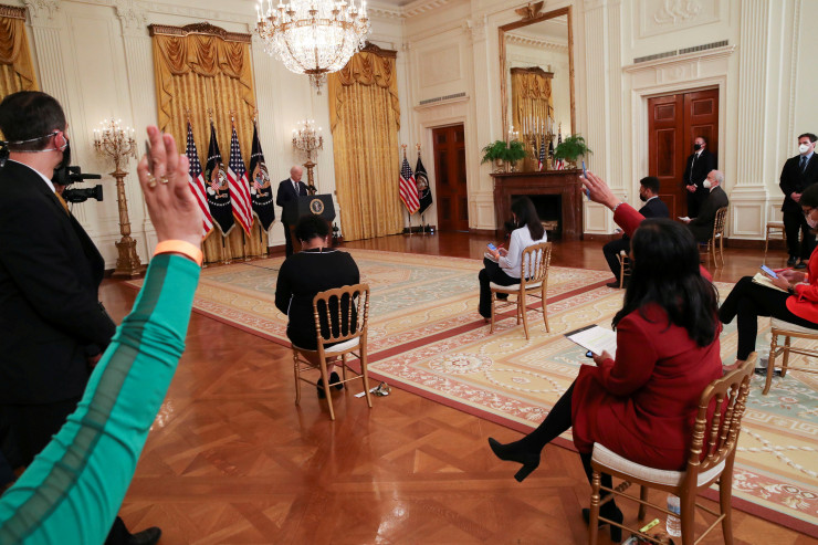 Сообщается, что на мероприятие было допущено всего 25 журналистов. Президент Байден взял ограниченное количество вопросов из списка с именами заранее отобранных репортеров.