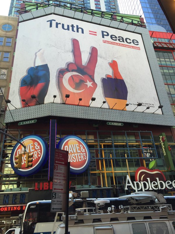 На улицах Нью-Йорка и Бостона появились плакаты с политической рекламой протурецкого движения, отрицающего факт геноцида армян, сообщает РИА Новости.