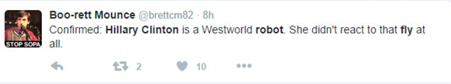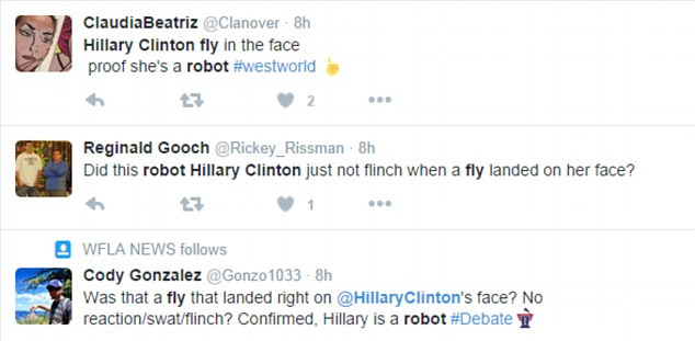 Между тем Интернет заполонили мемы на муху, севшую на бровь Хиллари Клинтон. Сторонники теории заговора утверждают, что бывшая первая леди Америки - робот, а случай с мухой лишний раз доказывает это.