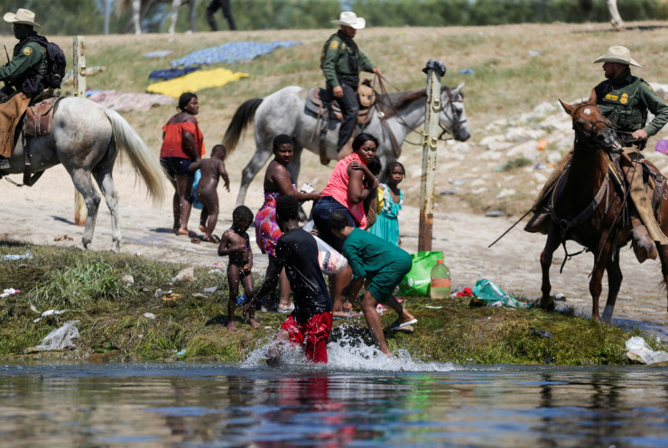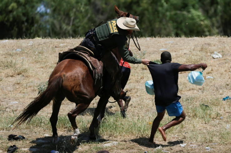 В СМИ и социальных сетях распространились фотографии, где запечатлены сцены, как сотрудники пограничного патруля на лошадях гнались за мигрантами, пытаясь оттеснить их к мексиканской границе у Рио-Гранде.