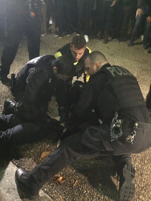 По словам очевидцев, потасовка возникла после того, как двое митингующих поспорили. После этого сотрудники секретной службы повалили одного на землю и отвели в полицейскую машину.