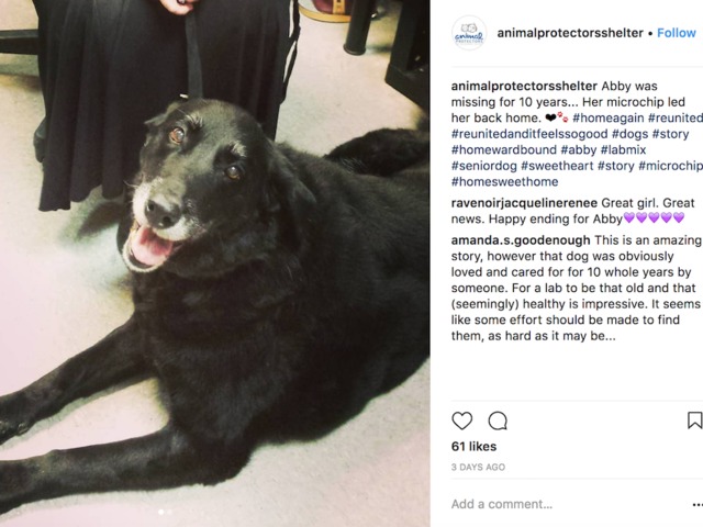 Американская семья из Пенсильвании воссоединилась со своей собакой Эбби, которая пропала десять лет назад, сообщает РИА Новости.