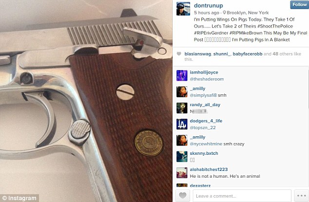 На своей странице в Instagram Бринсли написал, что хочет отомстить полицейским за смерть Эрика Гарнера и Майкла Брауна, которые ранее погибли от рук полицейских.