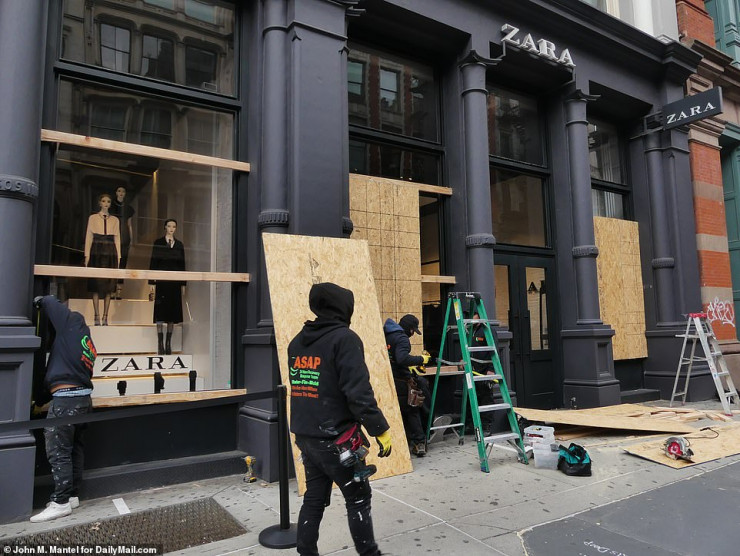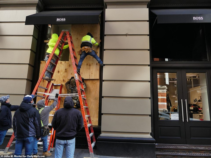 Владельцы модных домов на Saks Fifth Avenue в Нью-Йорке уже установили заграждения на витринах своих магазинов.